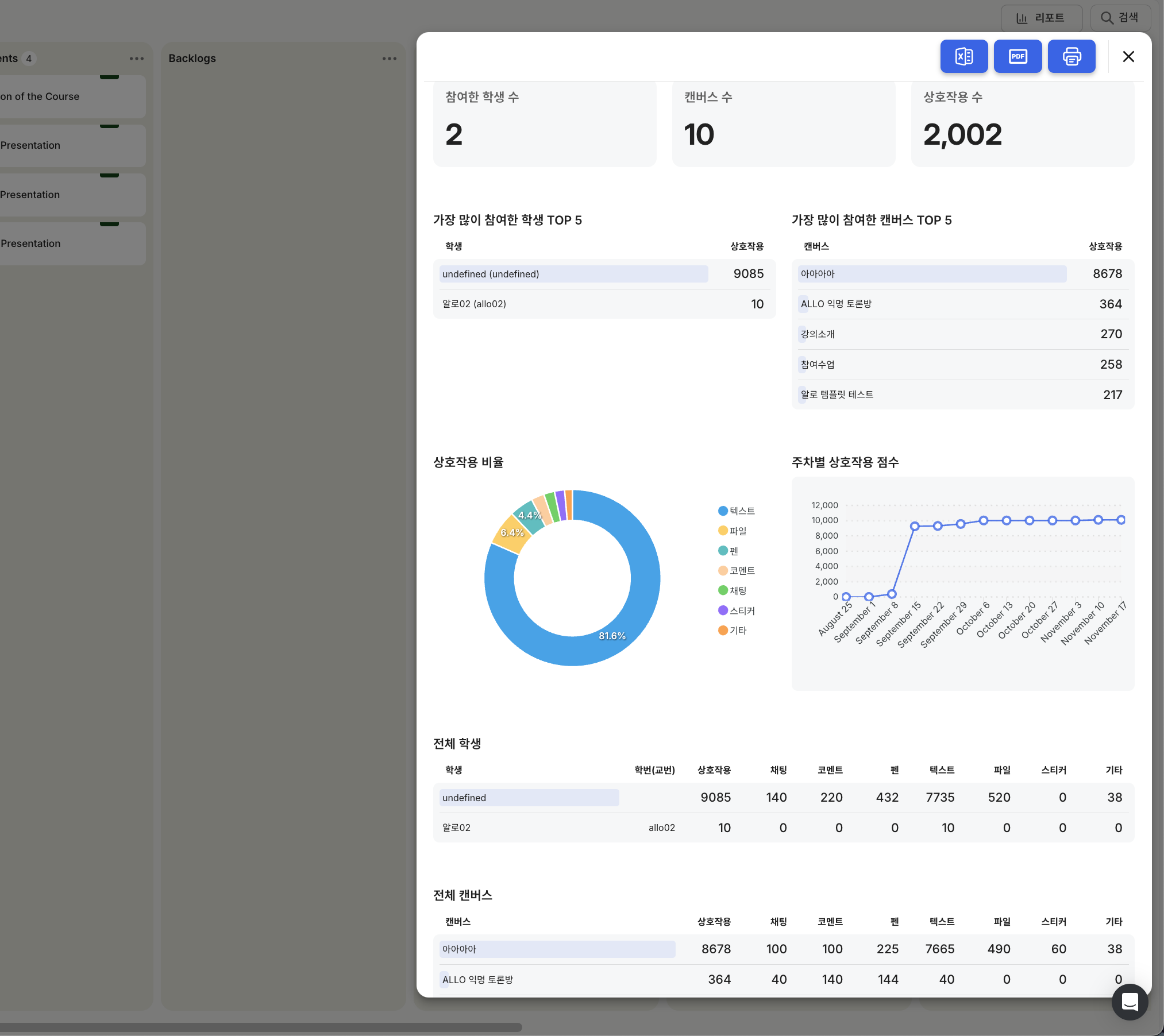 ALLO의 가장 큰 강점은 한 화면에서 모든 학생들이 동시에 참여할 수 있는 시각적 공동 작업 공간을 제공한다는 점입니다. 예를 들어 과제 해결을 위한 팀 프로젝트 시간에 학생들은 ALLO 보드에 자기 팀의 아이디어를 포스트잇처럼 올리고, 이를 실시간으로 다른 팀들과 공유합니다. 교수자는 각 팀 보드를 일일이 돌면서 지켜보는 대신, ALLO 상에서 모든 팀의 진행 상황을 한눈에 모니터링하고 필요한 순간 즉각 개입하여 실시간 피드백을 줄 수 있습니다. 서강대 CTL에 따르면 ALLO를 도입하면 “중·대규모 수업에서도 효율적인 그룹활동 관리와 실시간 피드백이 가능하여 교수자의 수업 운영에 유용하다”고 평가됩니다. 다시 말해, 100명이 넘는 대형 강의에서도 마치 소규모 세미나처럼 학생들 개개인의 생각이 공유되고 피드백이 오가는 양방향 수업이 가능해지는 것입니다.