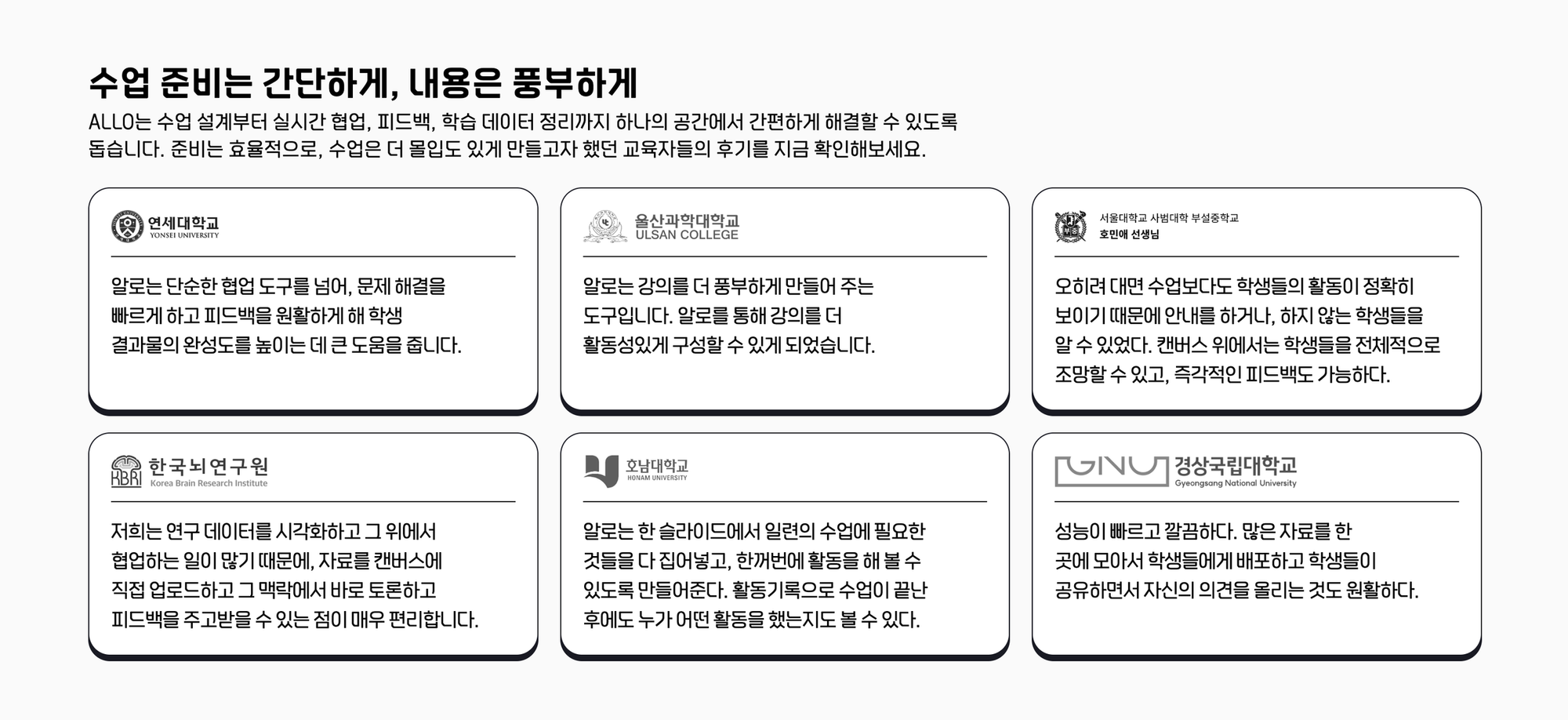 결국 해결 방안은 명확합니다. 대학은 기술과 사람을 모두 활용하여 쌍방향 학습 환경을 구축해야 합니다. 특히 ALLO와 같은 도구는 학습자 중심 설계를 기술적으로 뒷받침해주는 든든한 조력자입니다. 중요한 것은 이러한 도구의 도입을 CTL 전략과 연계해 체계적으로 추진하는 것입니다. 교수자 연수, 파일럿 강좌 운영, 성과 공유 워크숍 등을 병행함으로써, 학교 전체의 교수-학습 패러다임을 전환해나갈 수 있습니다.